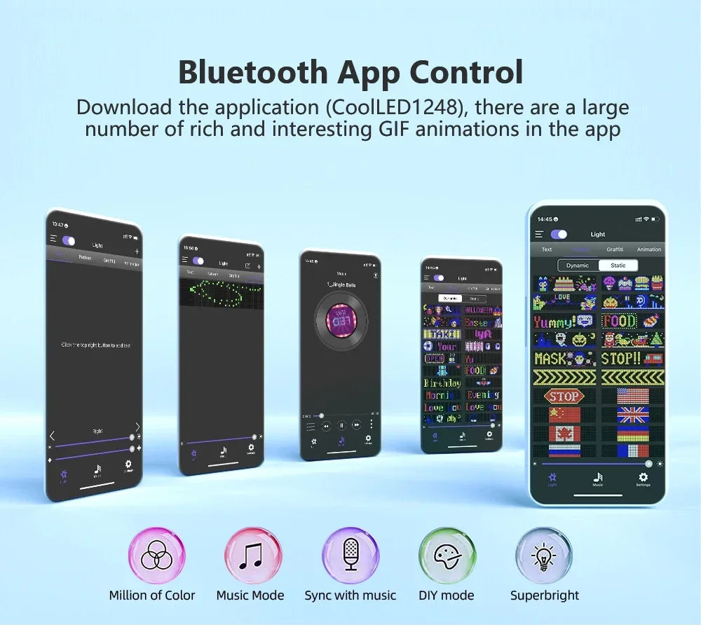 Easily connect via Bluetooth to the intuitive iPixel color app and personalize your display. Design custom text, animations, and patterns, adjust brightness, and control animation speed to suit your mood or occasion. -