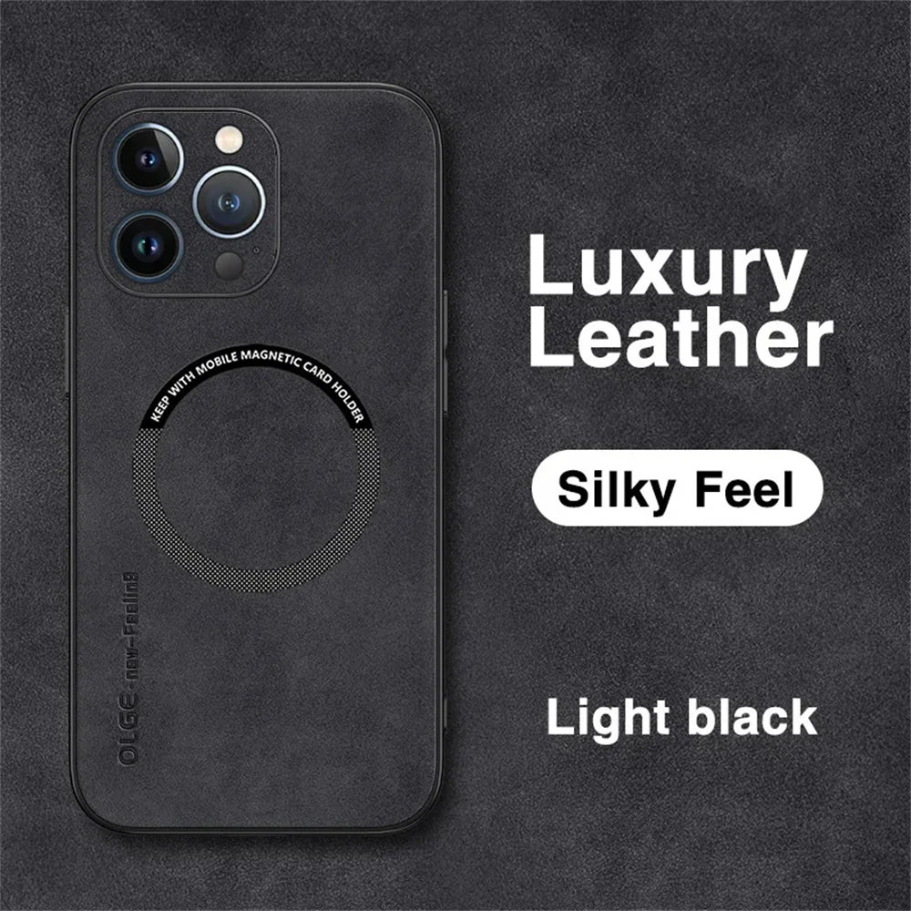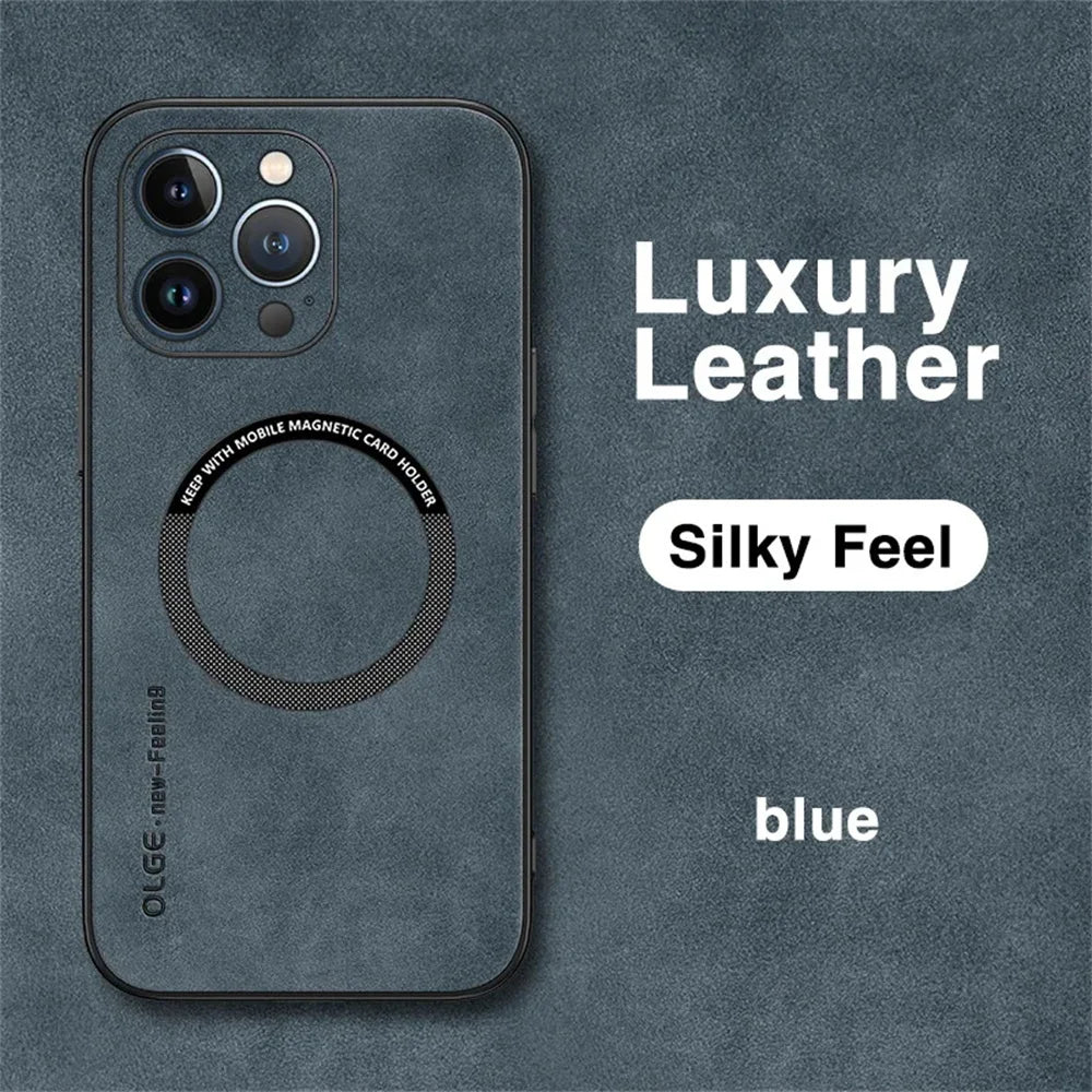 Elevate your iPhone protection with this luxurious, shockproof leather case that blends style, function, and advanced magnetic technology for seamless wireless charging.